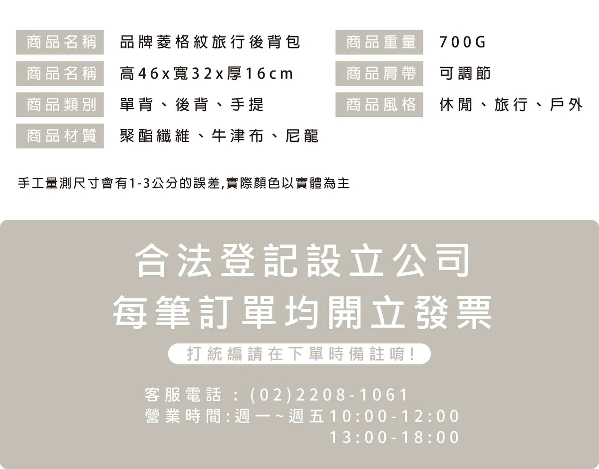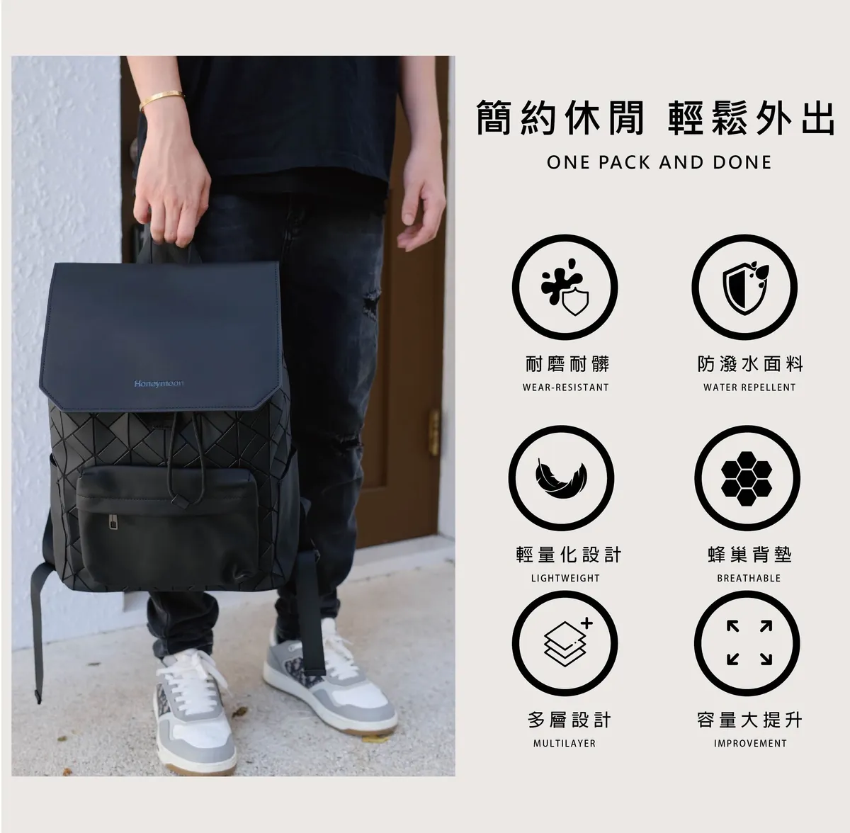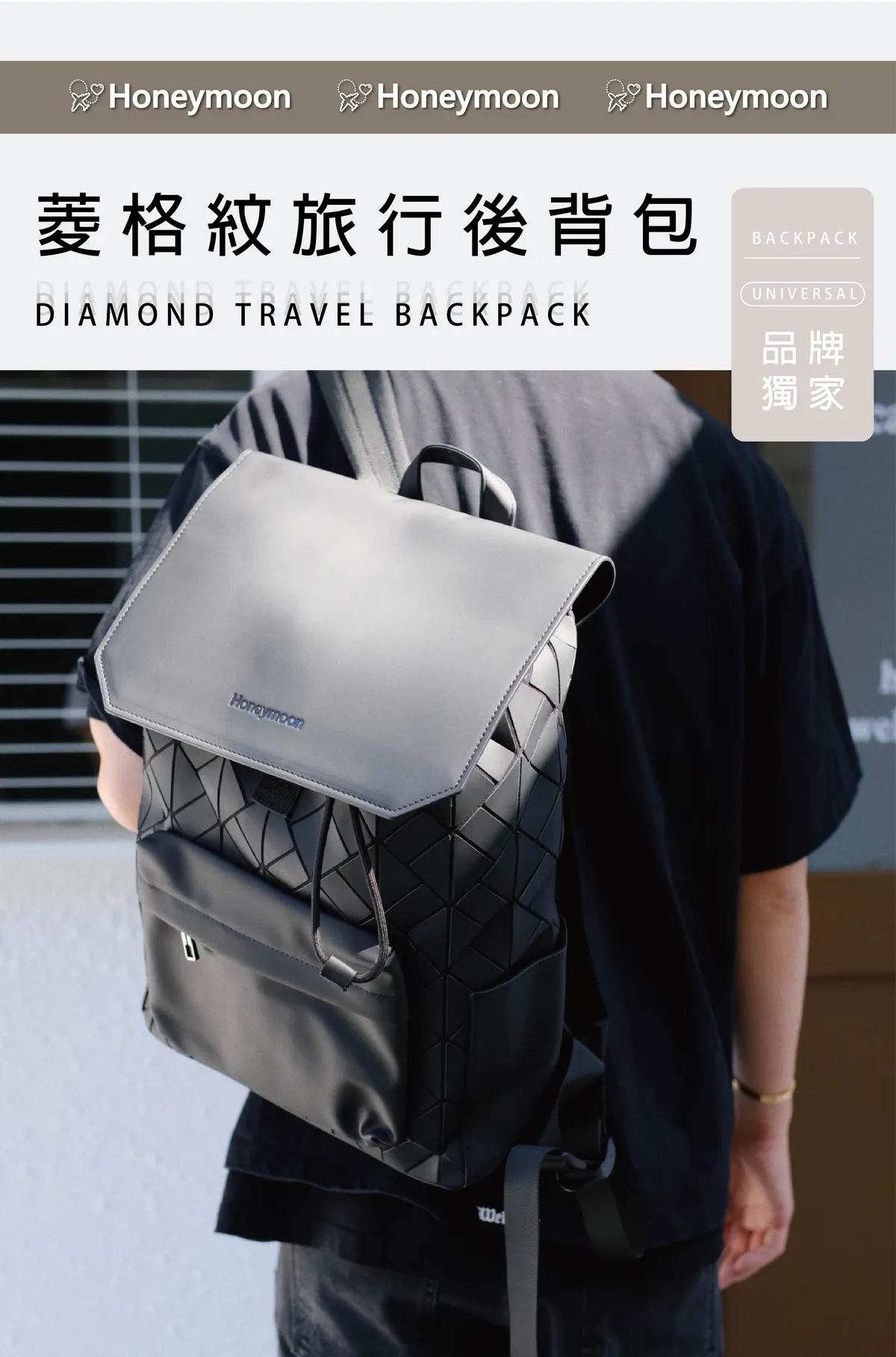 Honeymoon 品牌菱格紋旅行後背包