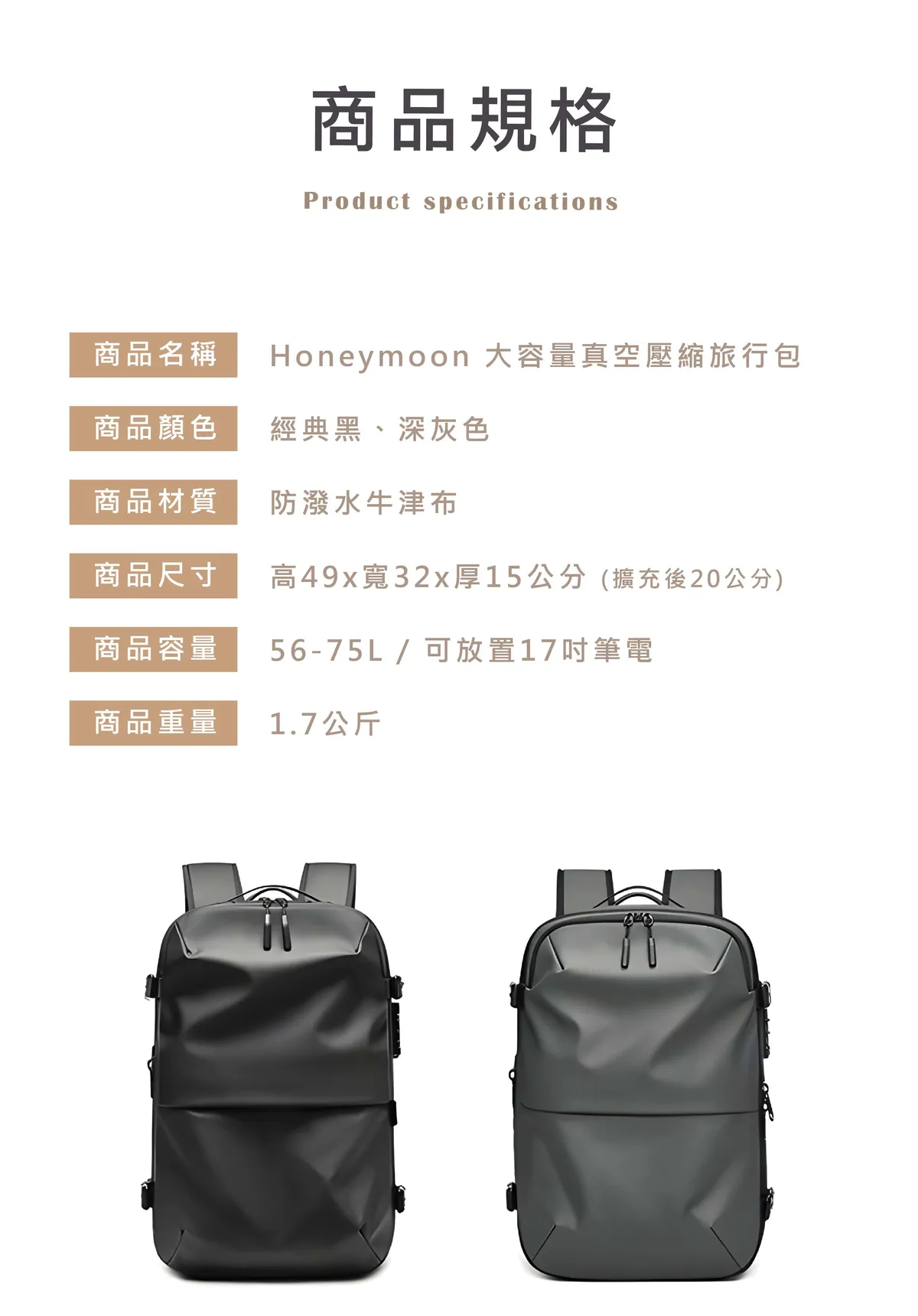 Honeymoon 大容量真空壓縮旅行包